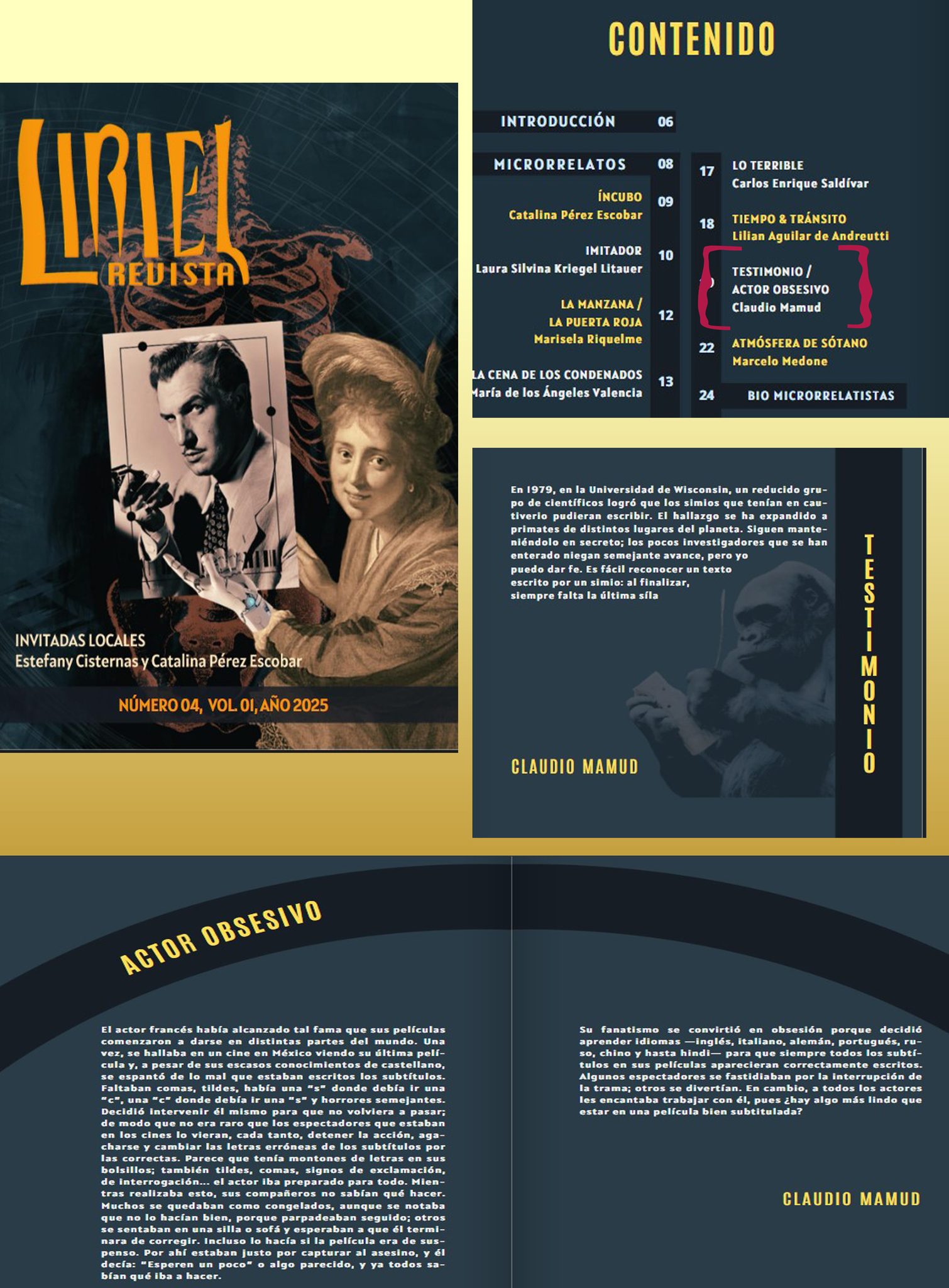 Ya tuvimos la oportunidad de mostrarles parte del trabajo de 𝐂𝐥𝐚𝐮𝐝𝐢𝐨 𝐌𝐚𝐦𝐮𝐝, autor argentino dueño de una pluma llena de ingenio y creatividad. 𝐀𝐜𝐭𝐨𝐫 𝐨𝐛𝐬𝐞𝐬𝐢𝐯𝐨 es una muestra de lo que digo. Describir el texto es difícil. Si pudiera hacerlo en una sola palabra, lo pondría así: distinto.